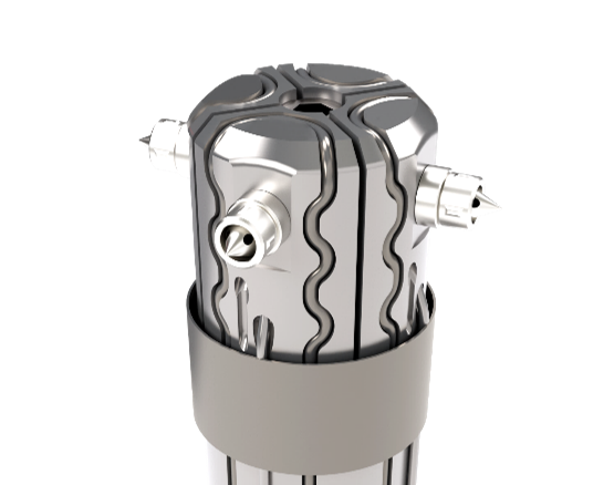 The Melt-Disk provides hot tip performance for edge gate applications. One of the distinct advantages of the Melt- Disk over an edge gate is that the cold slug is eliminated, allowing it to be used to gate thinner wall parts. The Melt-Disk offers direct gating with up to eight gates per nozzle in close proximity.
